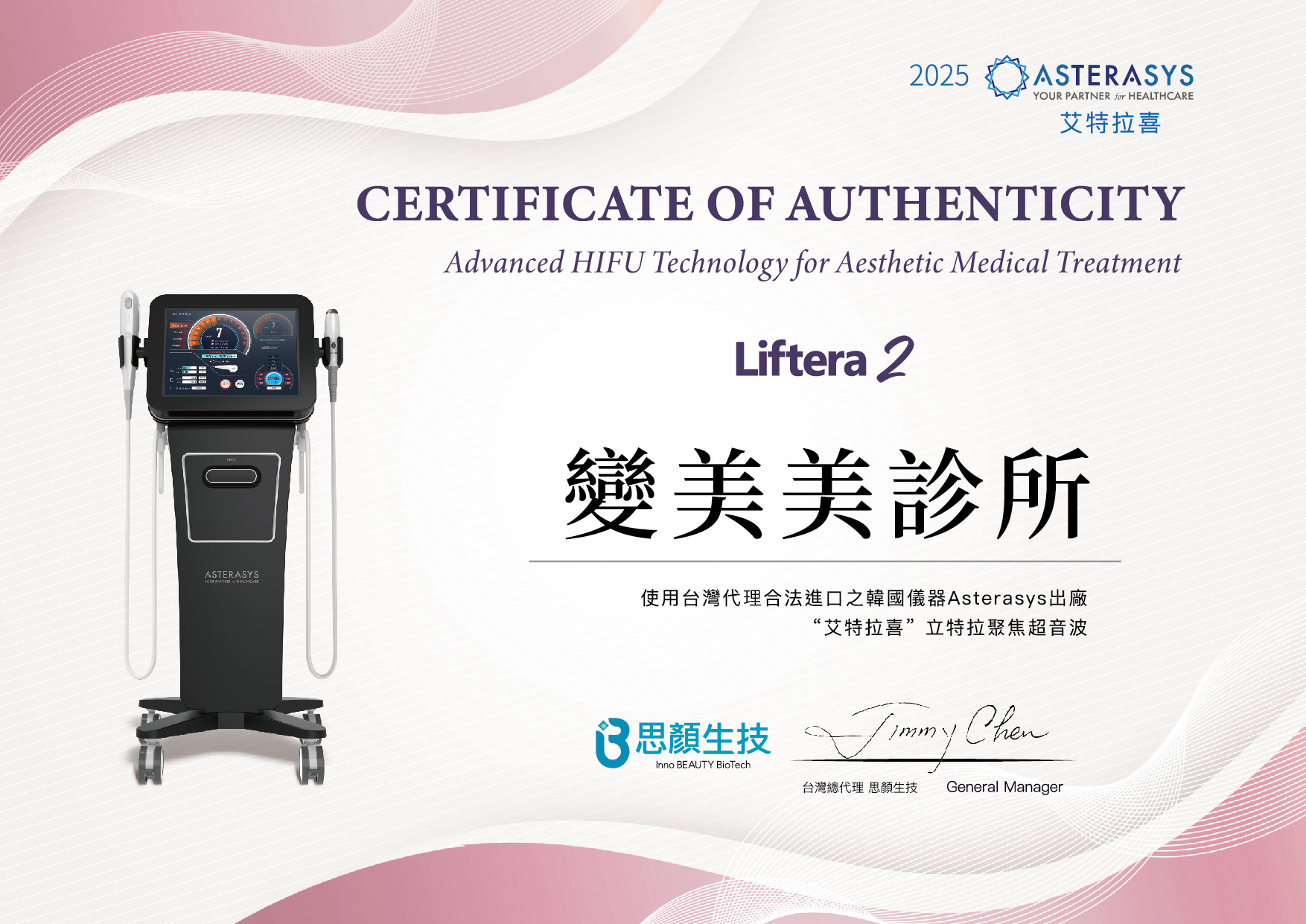讓民眾能辨別真正原廠正貨,醫療診所皆應公開出示原廠認證證書,同時專業人員均皆接受過"艾特拉喜"立特拉聚焦超音波之原廠正式教育訓練。